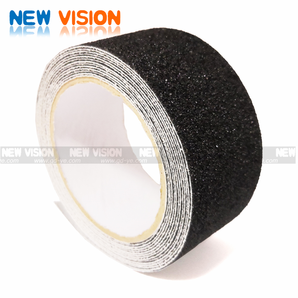 Product Description: Base material:PVC film/PET film/Aluminum foil/PP paper. • Adhesive: High performance pressure-sensitive acylic adhesive. • Surface coating:Extra Acrylic Coating to protect the grip layer. • Sand layer: Black Aluminium Oxide anti-skid surface. •Colour:Black/White/Grey/Transparent/Luminescent/Yellow/Red/Yellow&Black/etc.